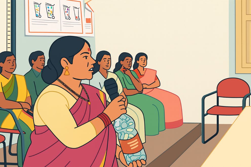 Simple folding techniques teach students and SHGs to create durable paper bags using recycled paper without chemicals or plastic.